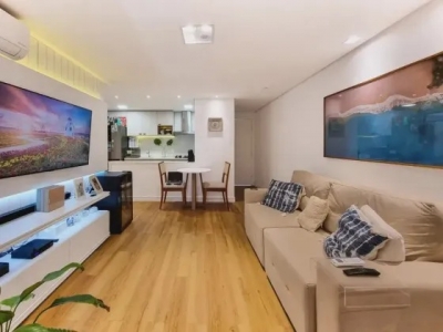 Apartamento á venda com 62 metros quadrados sendo 2 dormitórios, 1 banheiro e 2 vagas de garagem.